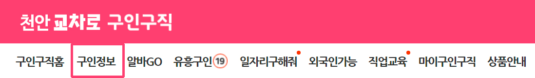 천안교차로 구인구직 메인화면에 접속하신 후,