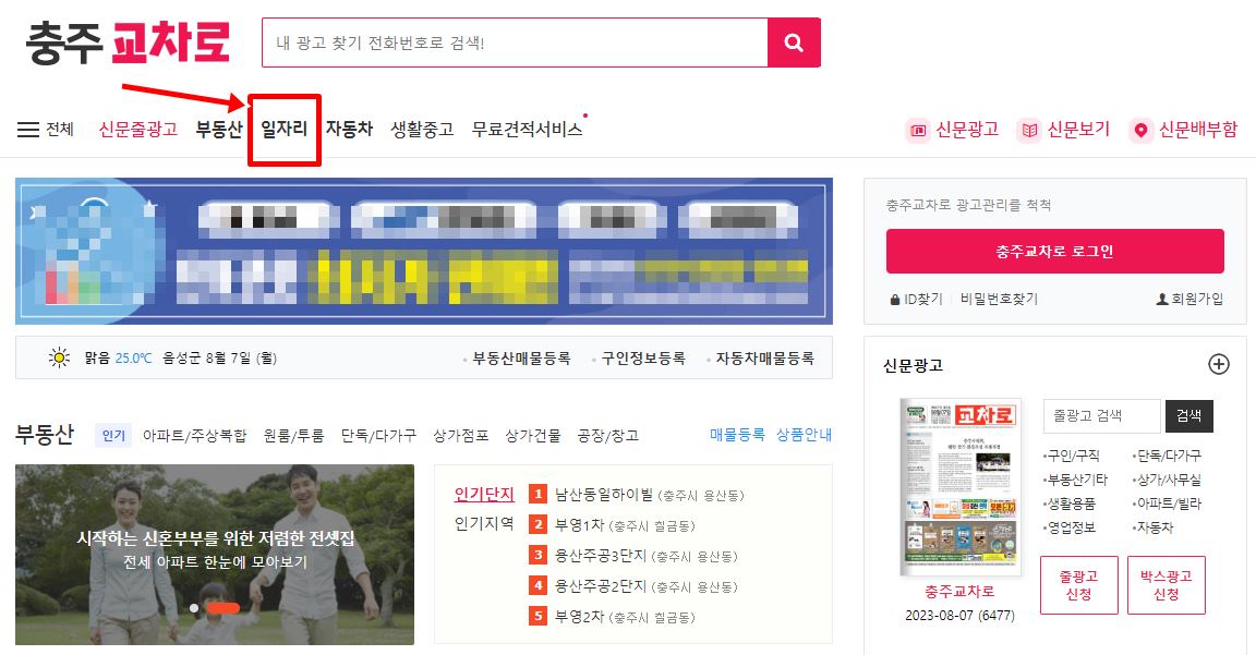 시간이 없는 분들은 아래 '충주교차로 구인구직' 바로가기로 들어가셔서 '일자리' 카테고리를 클릭 하시기 바랍니다.