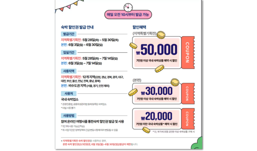 2024 숙박 페스타 쿠폰 발급 기간은 본편과 지역 특별전으로 나뉘어 진행됩니다.