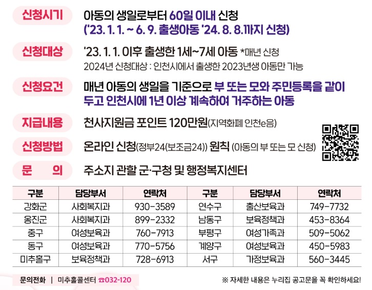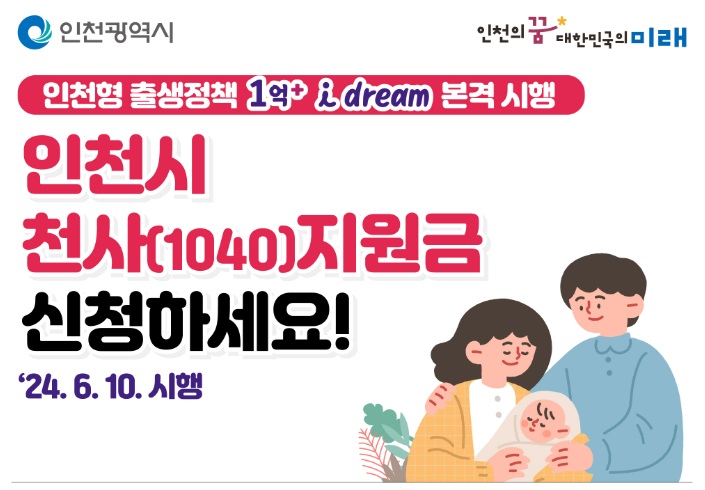 인천시에서 아이의 탄생을 축하하고, 아이의 건강한 성장을 지원하기 위해 마련한 천사 지원금 제도를 소개합니다.