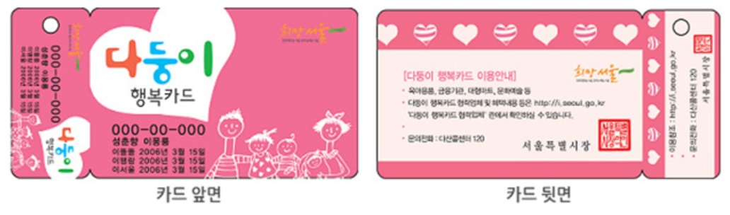 ● 카드 앞면에 발급자 및 자녀수가 기재된 카드
